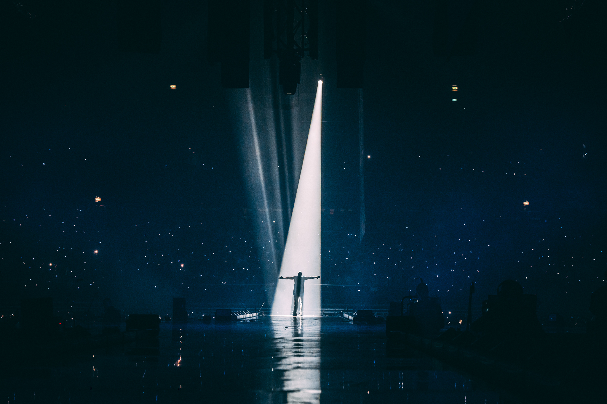 This project was a fully immersive 360° concert experience that redefined stage and lighting design, transforming the arena into a central hub of energy and emotion. The concept aimed to create a seamless connection between the performer and the audience, ensuring every attendee, regardless of position, had a unique perspective and direct engagement with the show. Audience members were given interactive lighting bracelets, which synchronized with the music and visuals, integrating them into the performance itself. The dynamic lighting design brought music, visuals, and audience participation into harmony, turning the venue into a living canvas where sound, light, and collective energy enveloped the crowd. More than just visibility, this 360° setup delivered an unforgettable experience, making the audience an essential and active part of the performance.