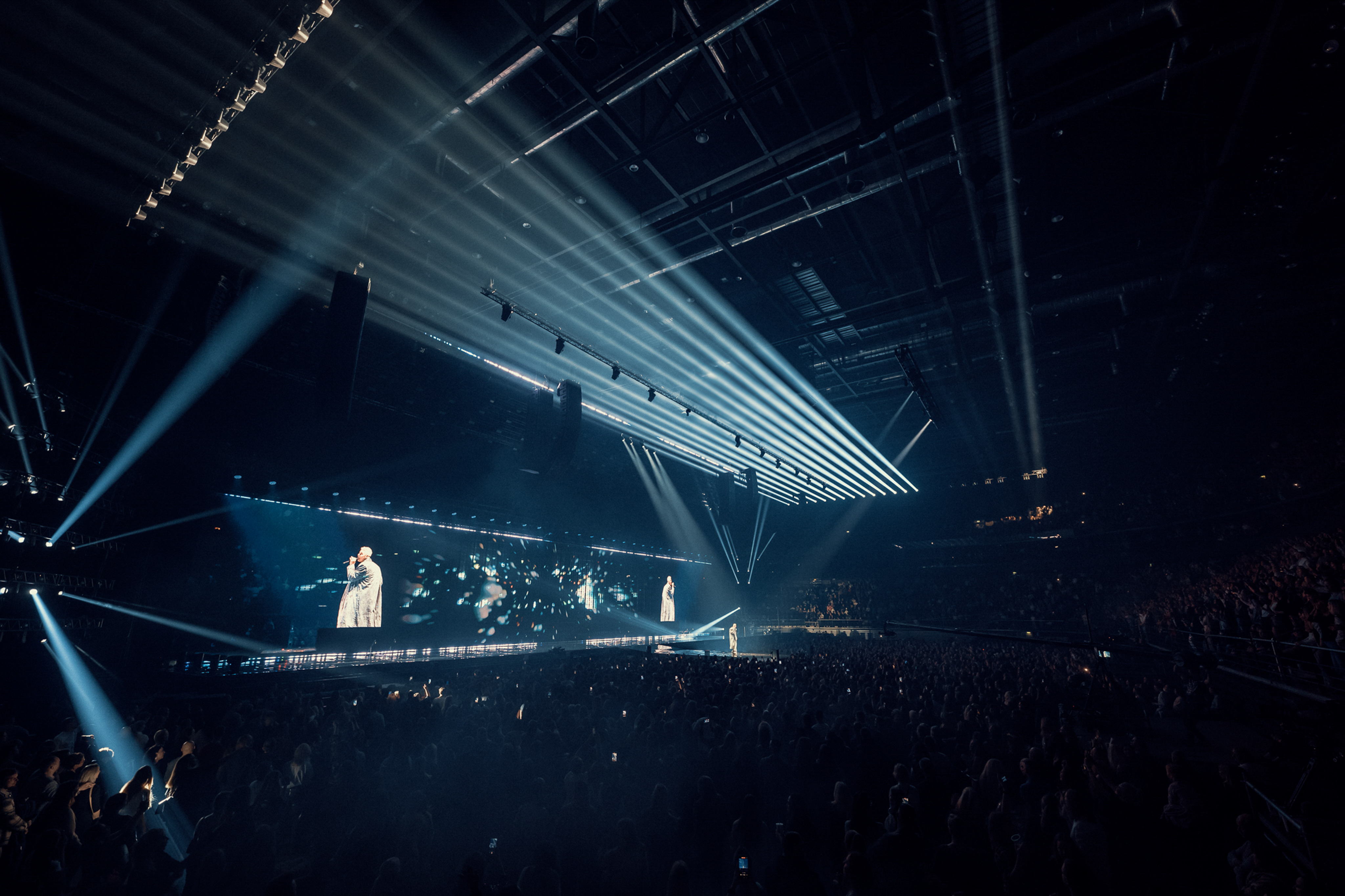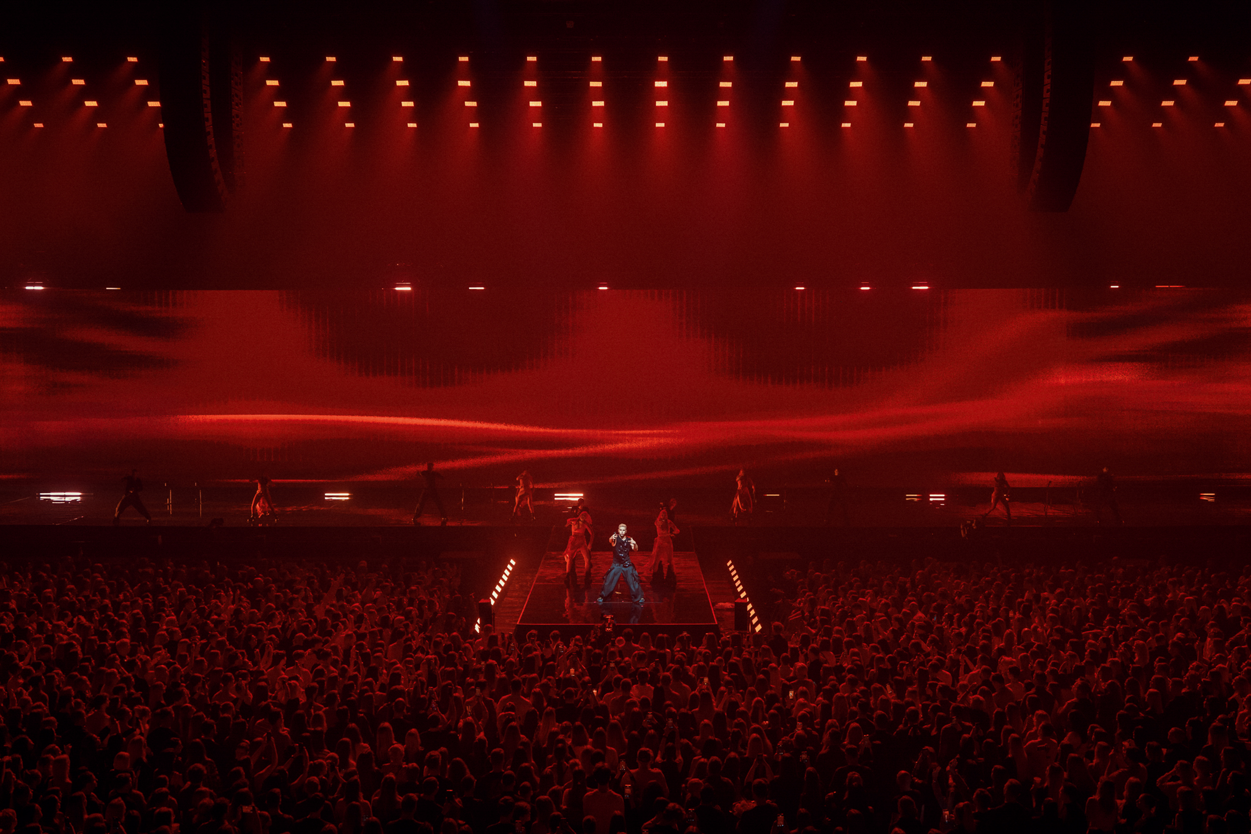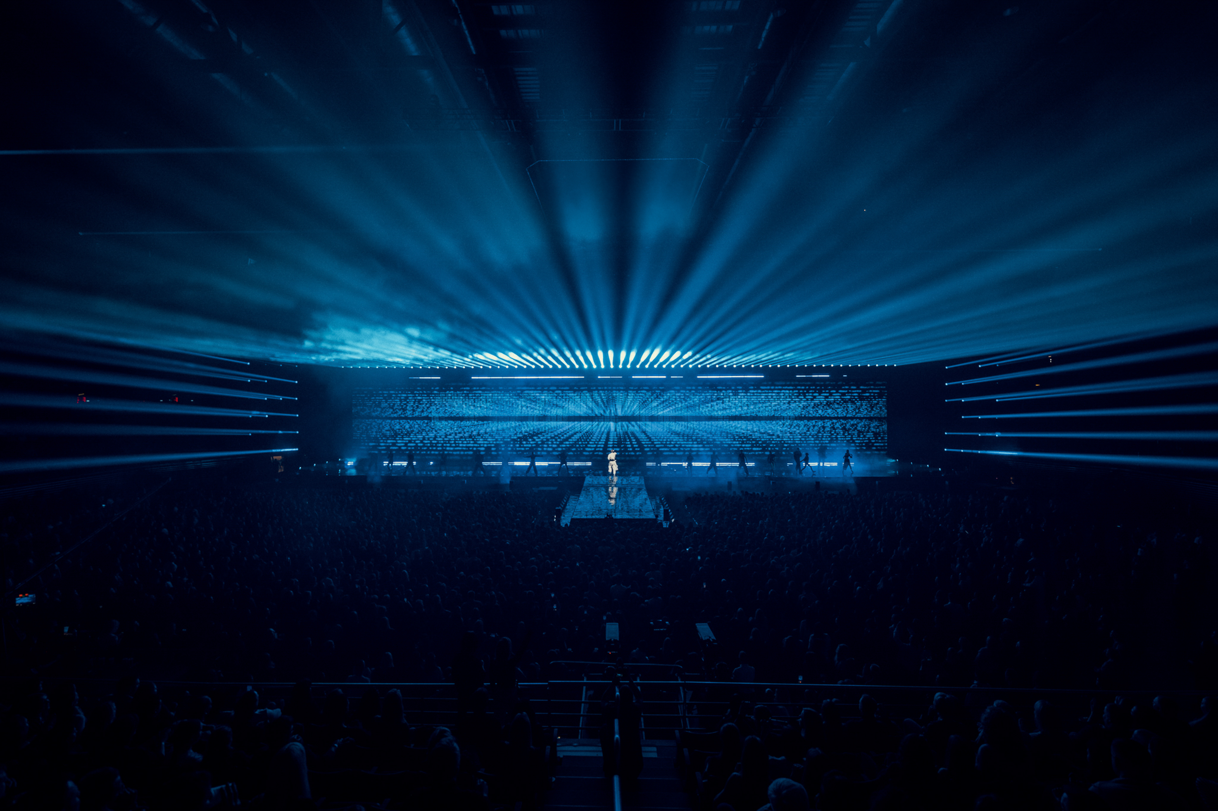 This project wasn’t just about scale, although the impressive setup speaks for itself—featuring 300m² of transparent LED panels at the front, 100m² of LED P7 ROE screens at the back, and a lighting plot comprising 564 fixtures that set the stage for an unforgettable experience.